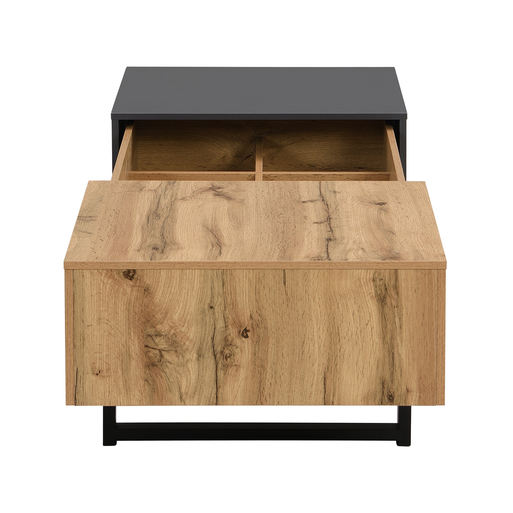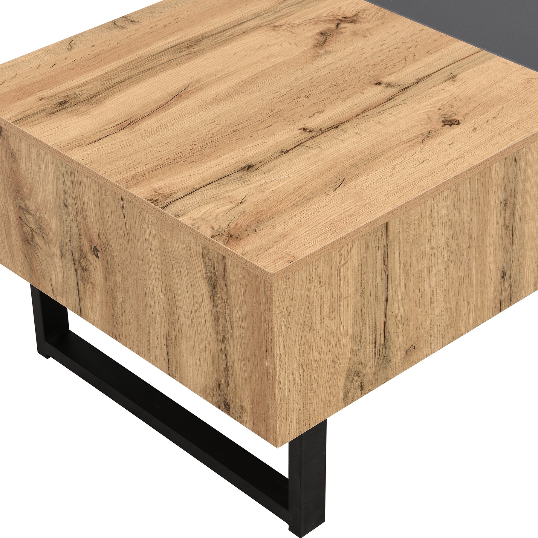 • Design color block tendance : L’alliance du bois et de l’anthracite, inspirée des dernières tendances déco, sublime votre salon et se marie idéalement avec le meuble TV assorti de la même collection.