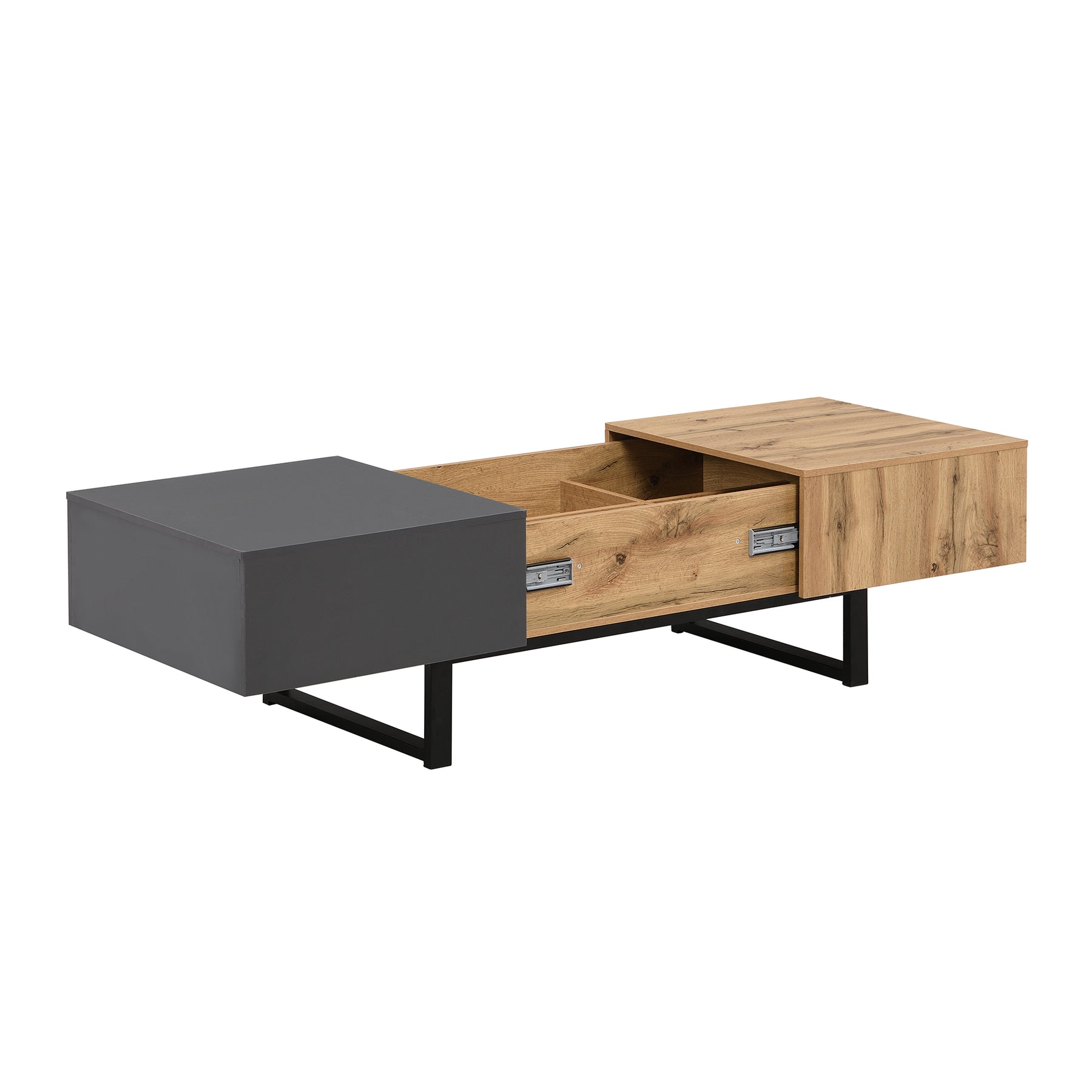 Table basse multifonction moderne coulissante avec rangement caché, effet bois et gris SOLSTICEWHIFF