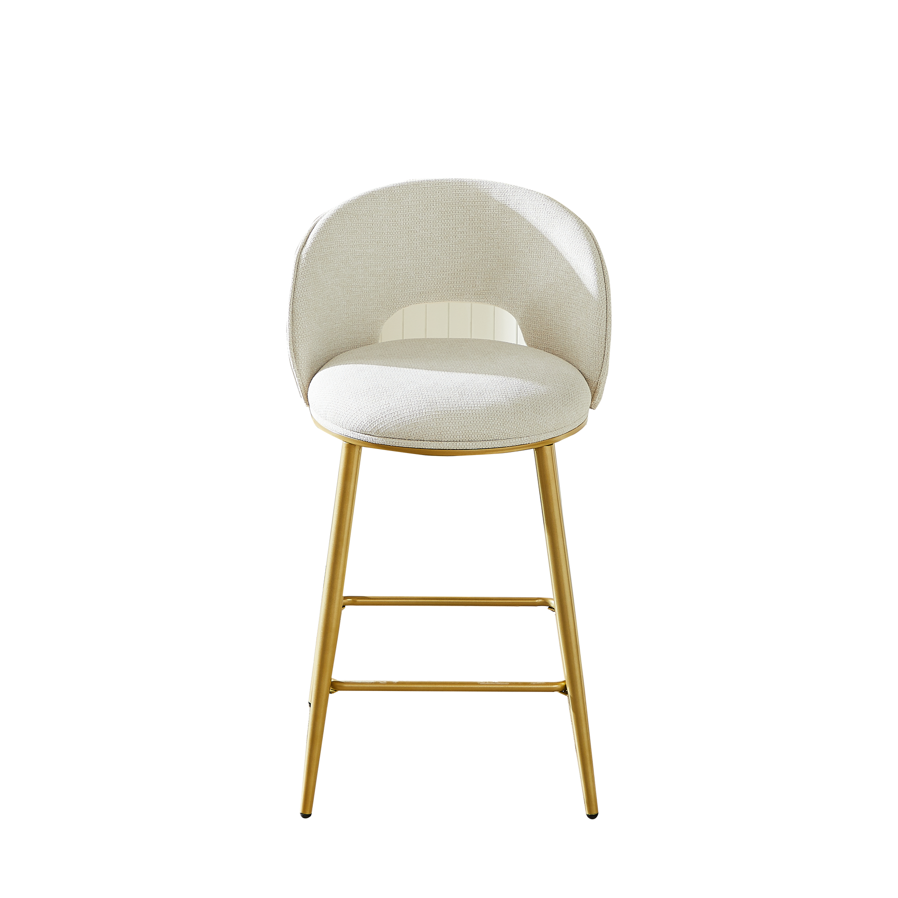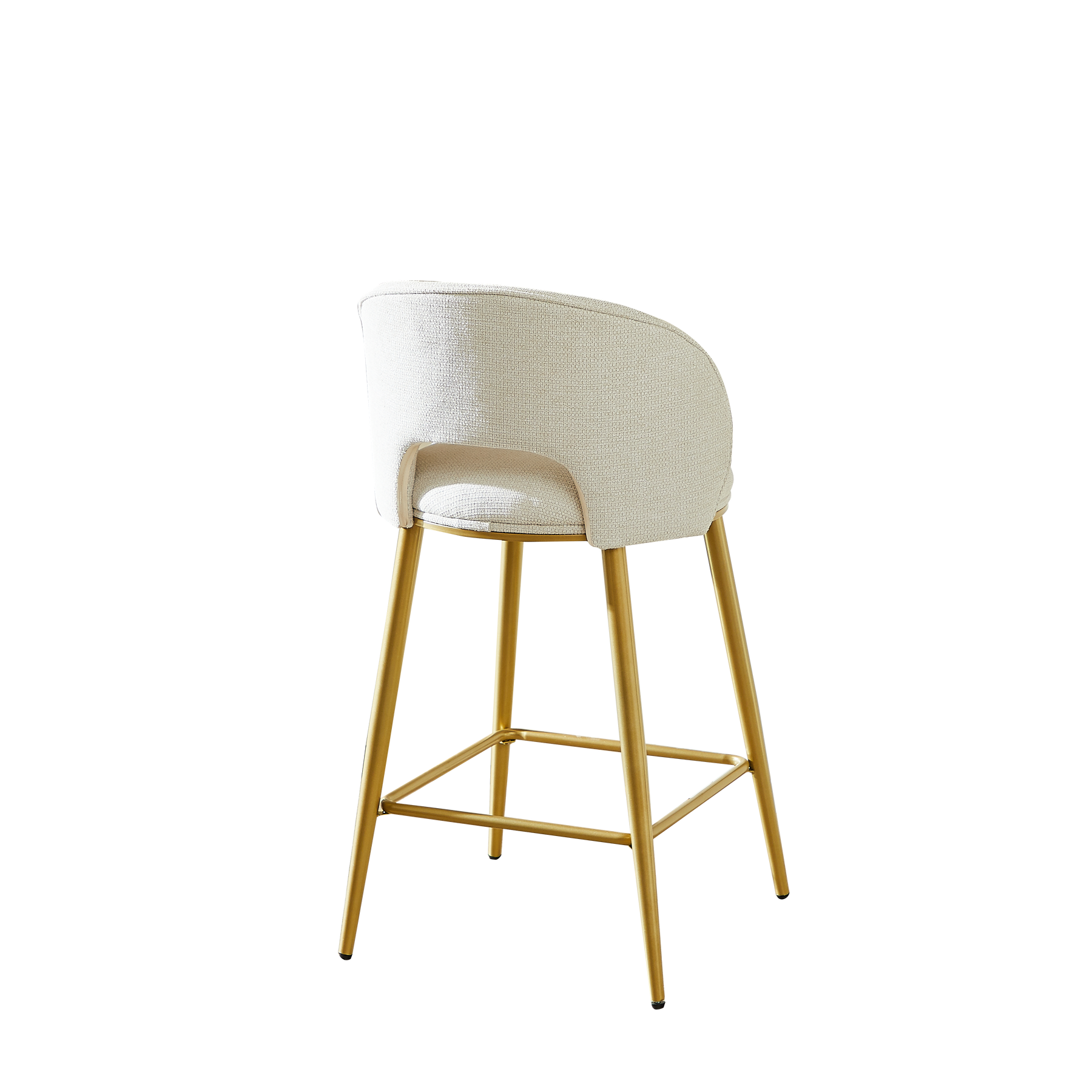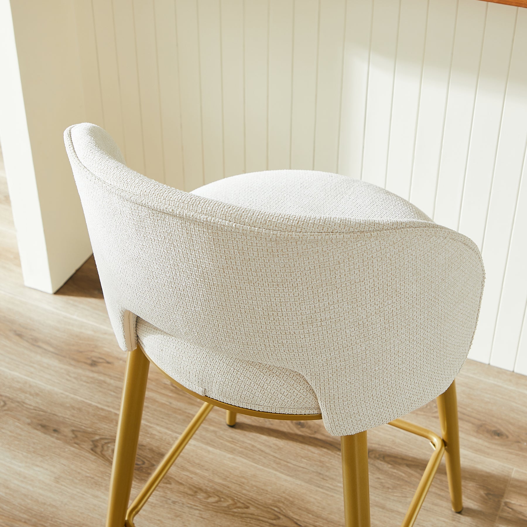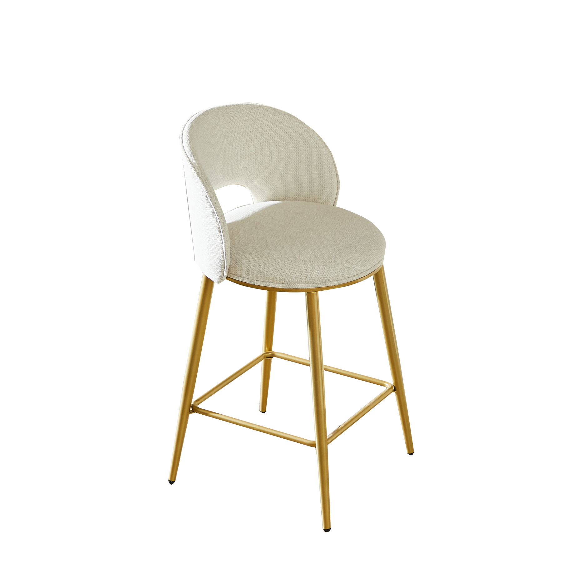 Lot de 2 tabourets de bar chenille beige avec dossier ajouré, pieds dorés FLAREKAEL