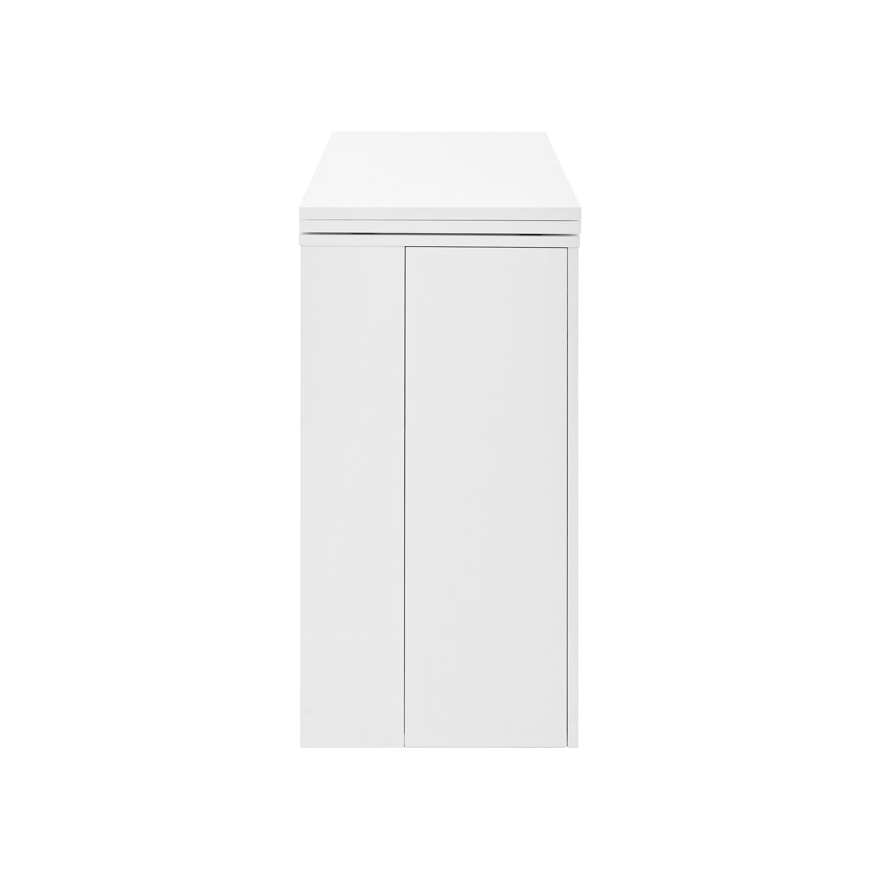 Optimisez votre espace avec cette table de bar moderne et multifonctionnelle d'un blanc éclatant. Son design intelligent permet à la tablette de pivoter à 360° et de s'étendre, transformant instantanément votre bar compact en une spacieuse table à manger ou un îlot de cuisine. L'unité de base sert de buffet pratique avec des portes coulissantes en verre canelé au design arqué élégant, parfait pour présenter votre vaisselle. Alliant esthétique moderne et construction robuste, cette pièce est la solution idéale pour les petits espaces nécessitant une polyvalence maximale.