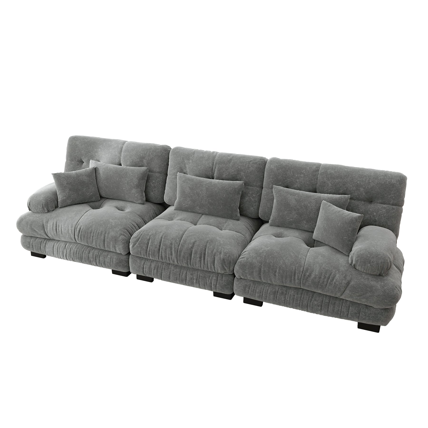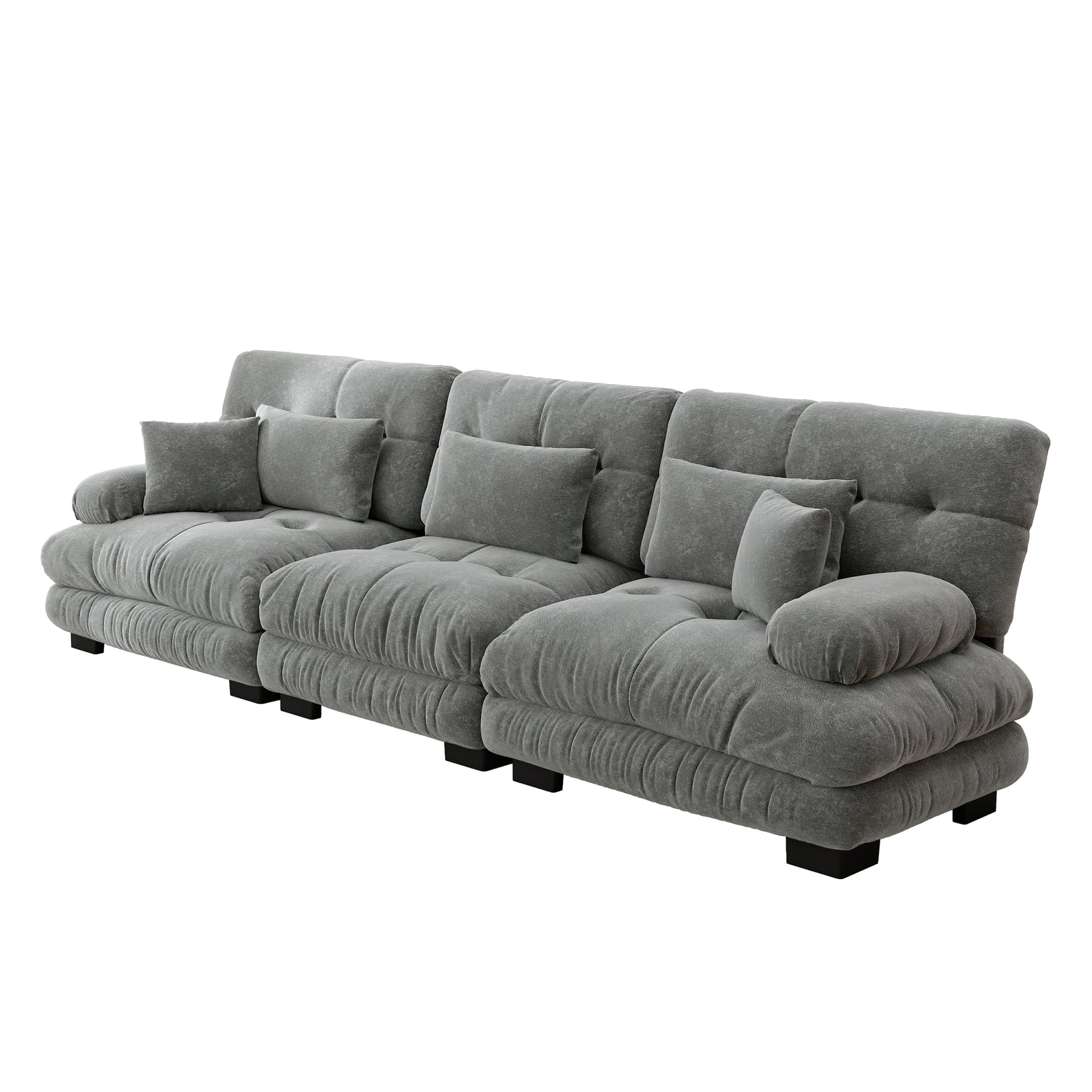 Canapé rembourré modulable 3 places en tissu chenille gris assise profonde HYPHAE