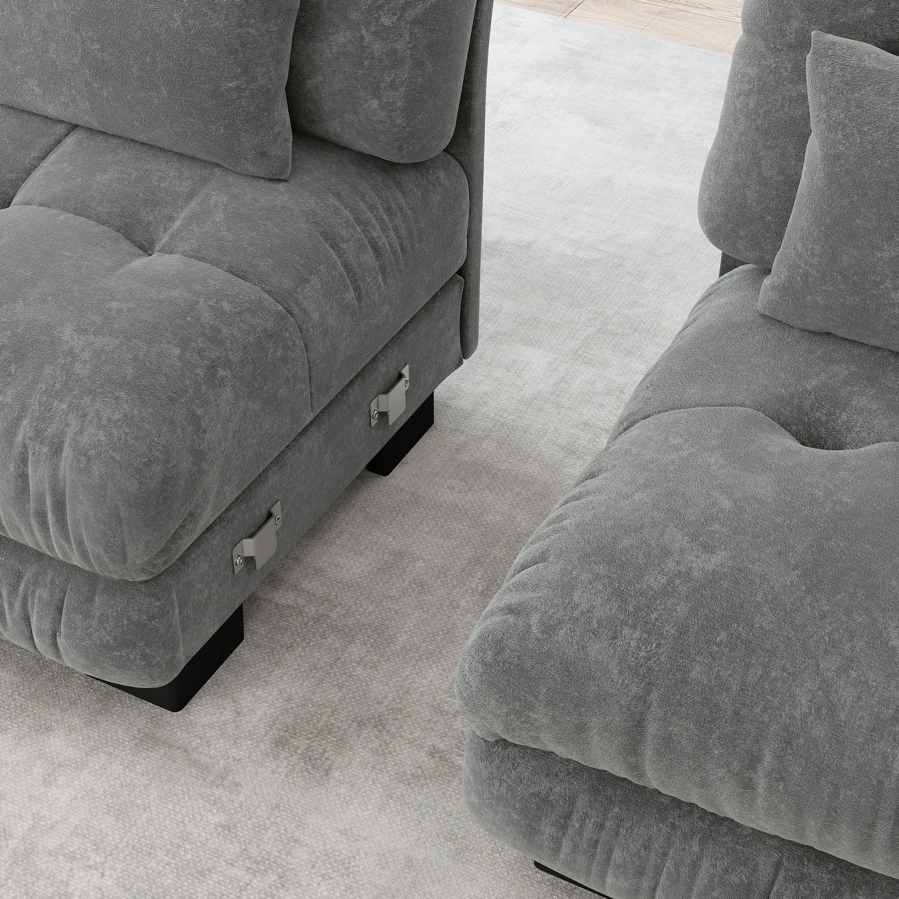 Plongez dans un confort inégalé avec ce canapé au design moderne et sophistiqué. Confectionné en tissu chenille vintage, doux et durable, il offre une sensation d'assise « comme sur un nuage » grâce à ses coussins sans ressorts ni bois, rembourrés de mousse haute élasticité. Les accoudoirs ronds et rembourrés ajoutent une touche unique et peuvent servir de support ergonomique pour la tête. Entièrement modulable, ce canapé s'adapte à tous les espaces et vous invite à la détente, que ce soit pour regarder la télévision, lire ou simplement vous prélasser.