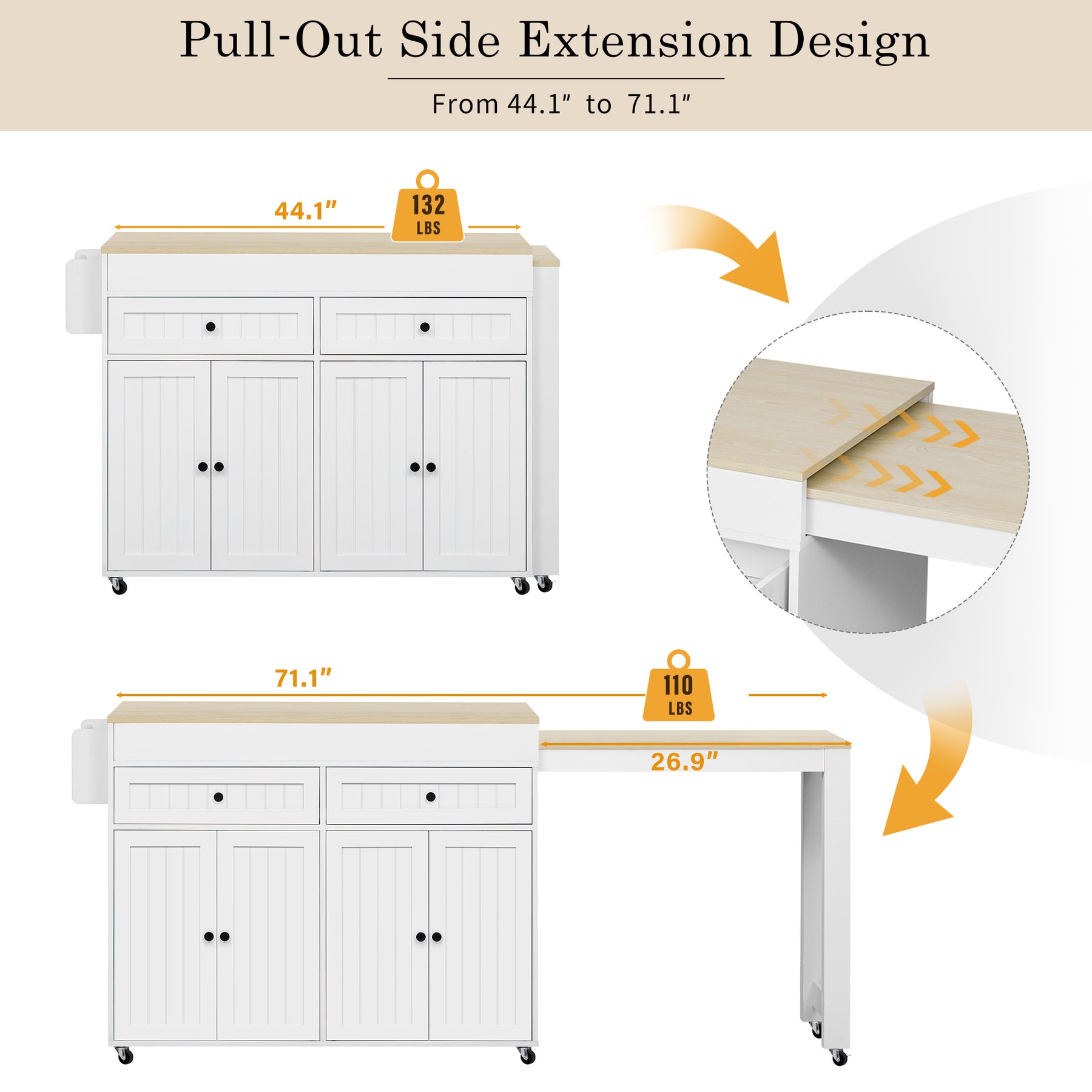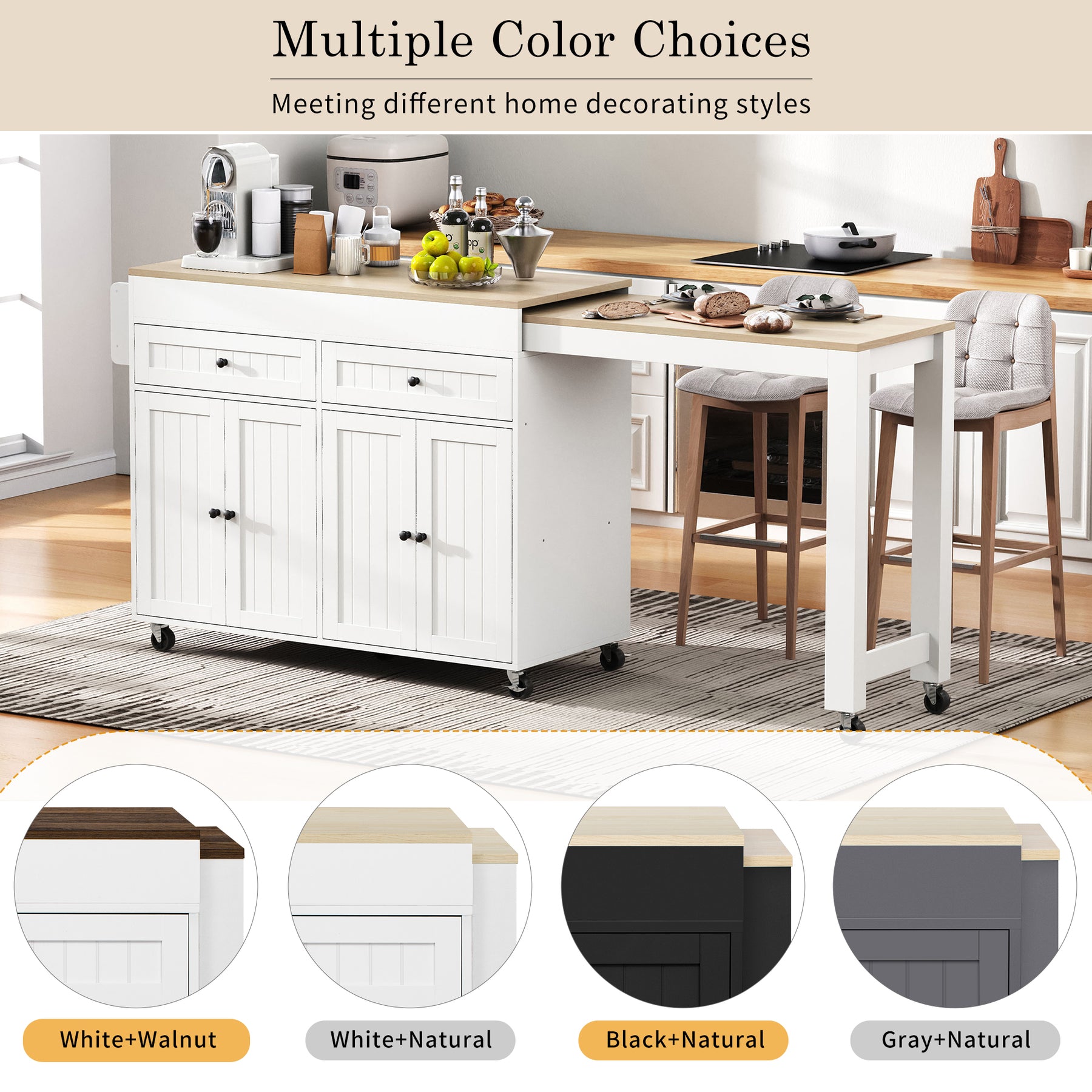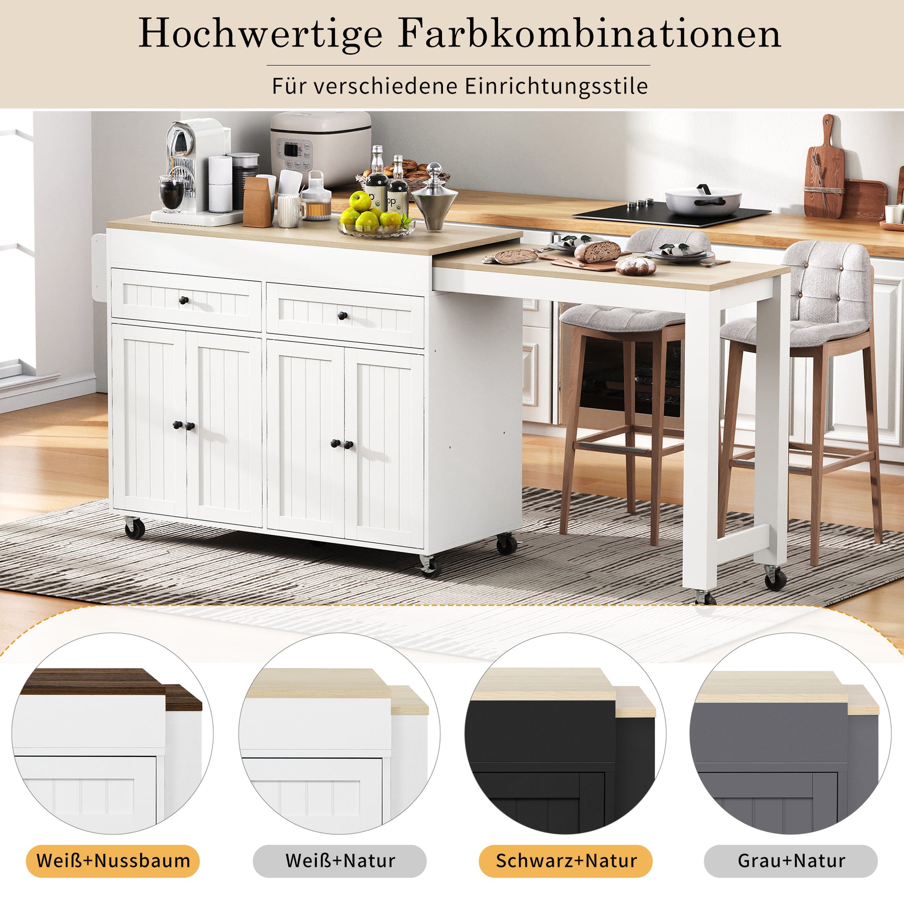 Îlot de cuisine mobile multifonctionnel avec plateau rétractable 2 tiroirs et 4 portes CAPSID
