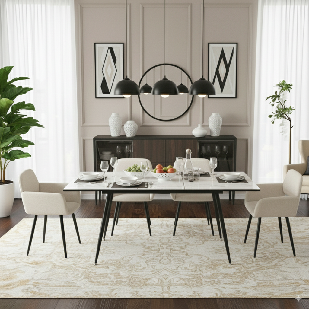 • TABLE MODERNE ET ÉLÉGANTE : Cette table à manger présente un design moderne effet marbre blanc, ce qui permet de l'associer à différents styles d'ameublement. Son design raffiné et ses lignes épurées créent une atmosphère chaleureuse et conviviale dans votre intérieur.
